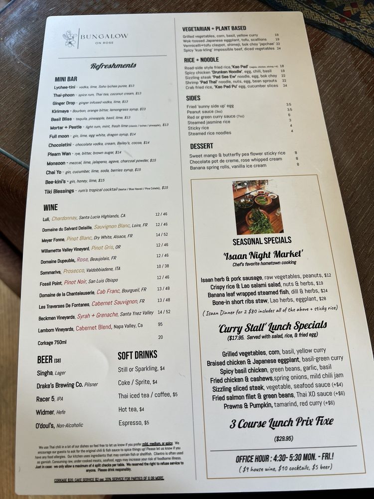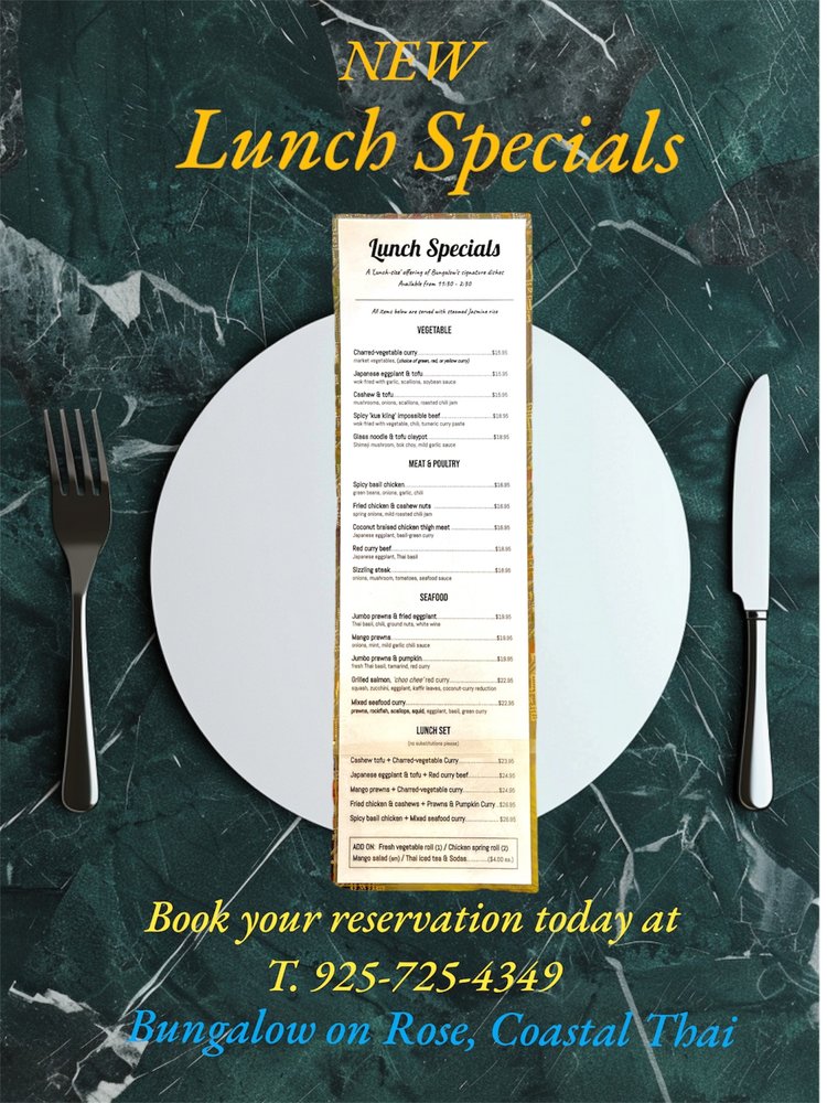 Welcome to Bungalow on Rose Coastal Thai Restaurant & Bar, where authenticity meets culinary artistry in the heart of Danville, CA. Their menu expertly showcases traditional Thai flavors, vividly presented to tantalize your palate.